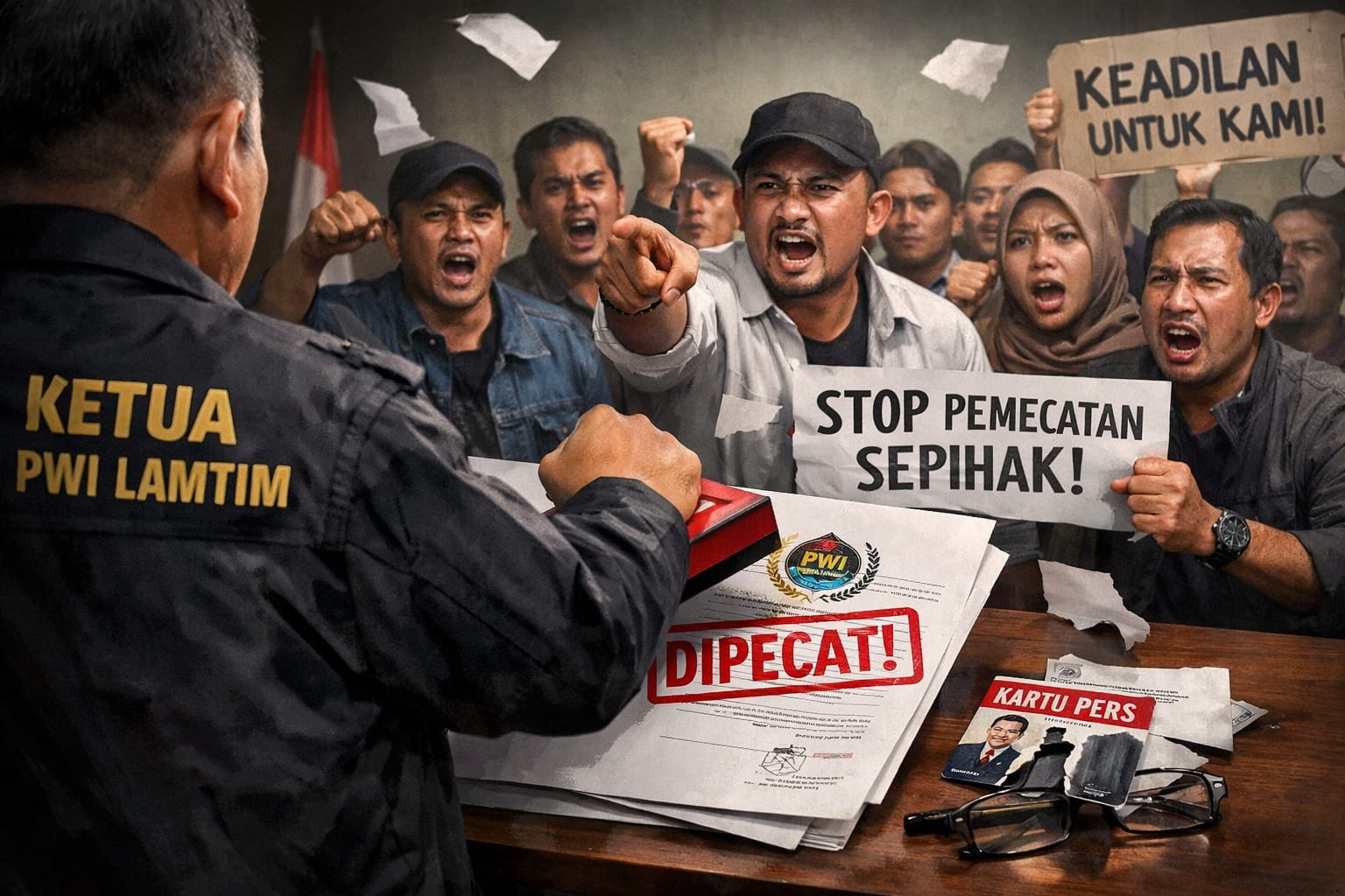 “Jangan anggap remeh pemecatan sepihak ini. Ini bukan soal pribadi, ini soal aturan dan kehormatan organisasi. Kalau ini dibiarkan, maka PWI di daerah bisa berjalan tanpa rambu,” ujarnya dengan nada keras.